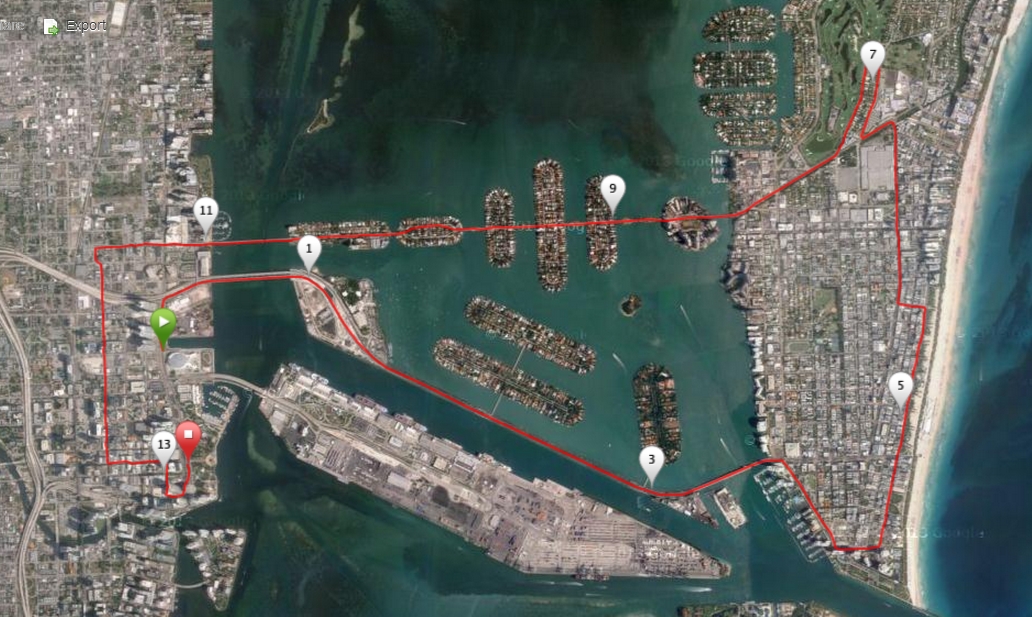 Anyway, the race proper: I gave a basic summation of my experience early in the review, but for those who’ve never done it before, it certainly provides a fairly comprehensive tour of the South Beach highlights. You head over the MacArthur Causeway, with the Star and Palm Islands on your left and Port of Miami on your right. Even though the first mile begins with a bridge, it’s the only real incline of the Half Marathon. After that you circle past South Point, down Ocean Drive (the main artery of South Beach, with the Atlantic Ocean on your right), north on Washington with a “Publix Mile” loop around Prairie and Meridian Avenues, and west up the Venetian for about 3 miles until we’re back on the mainland and a final jaunt down North Miami Avenue (right down the street where they had all the outdoor sets for the garbage “Rock of Ages” movie) until we made our way back to the Finish Line.